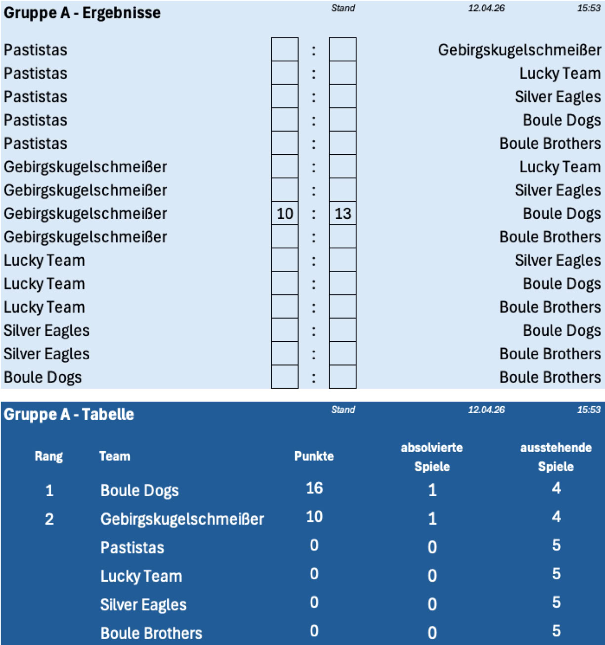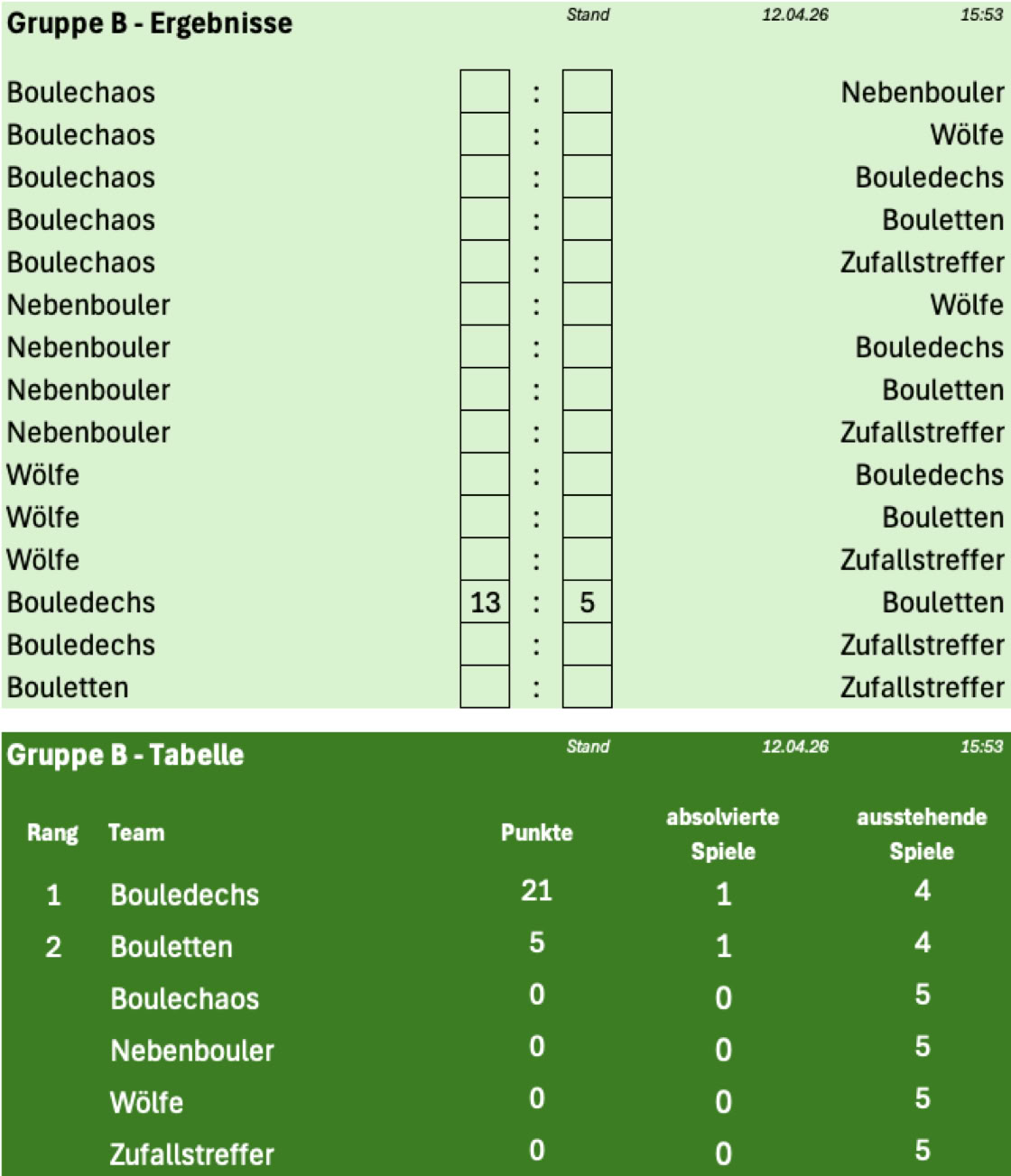 Alle Tabellen zeigen den momentanen Spielstand gemäß des Datums in der ersten Zeile pro Tabelle